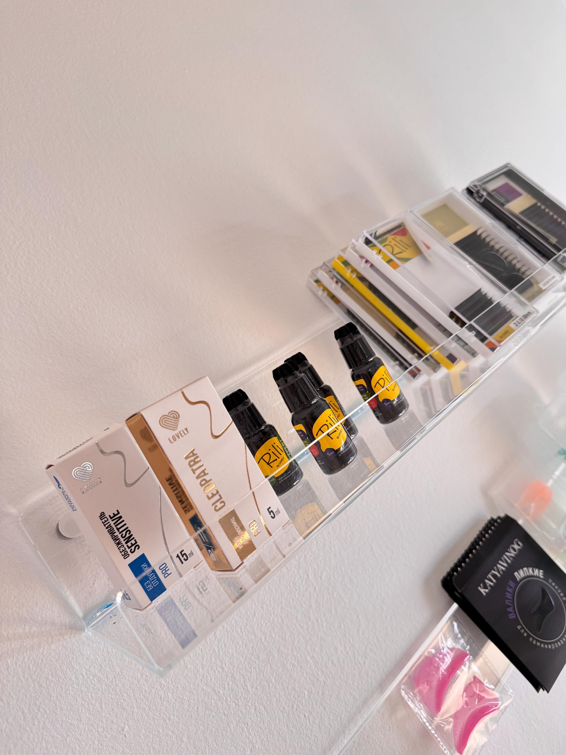 1 piece. Floating shelf for home and office. For a clinic or salon. Transparent acrylic wall shelf.
