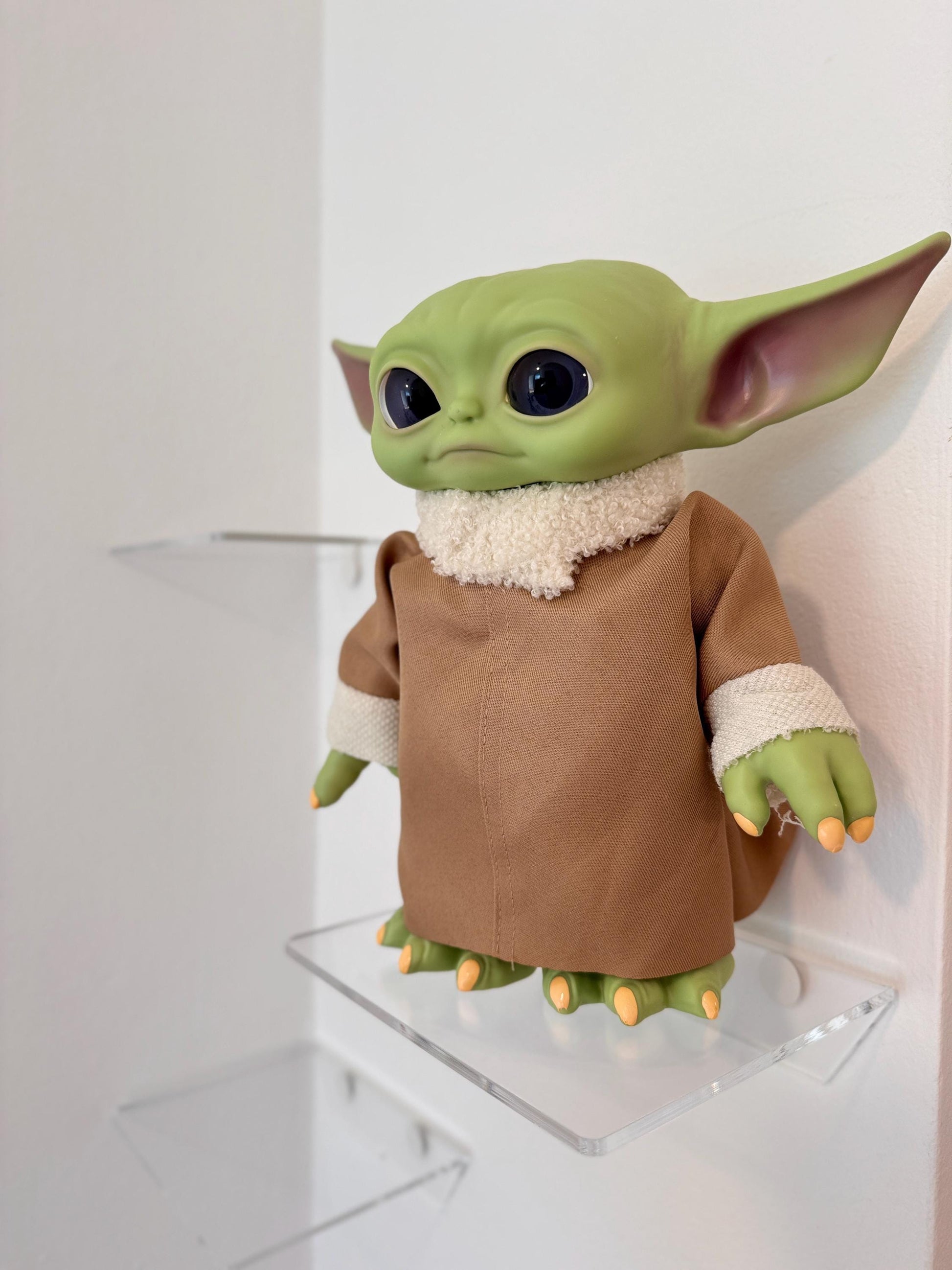 Versatile transparent floating acrylic shelves will seamlessly blend into your interior. Shelves for every need. Invisible book shelves. Wall-mounted shelves for cosmetics in the bathroom. Or floating document shelves in the office. These shelves are a must-have for every home. Simple, beautiful, and easy to use. Set of three shelves.