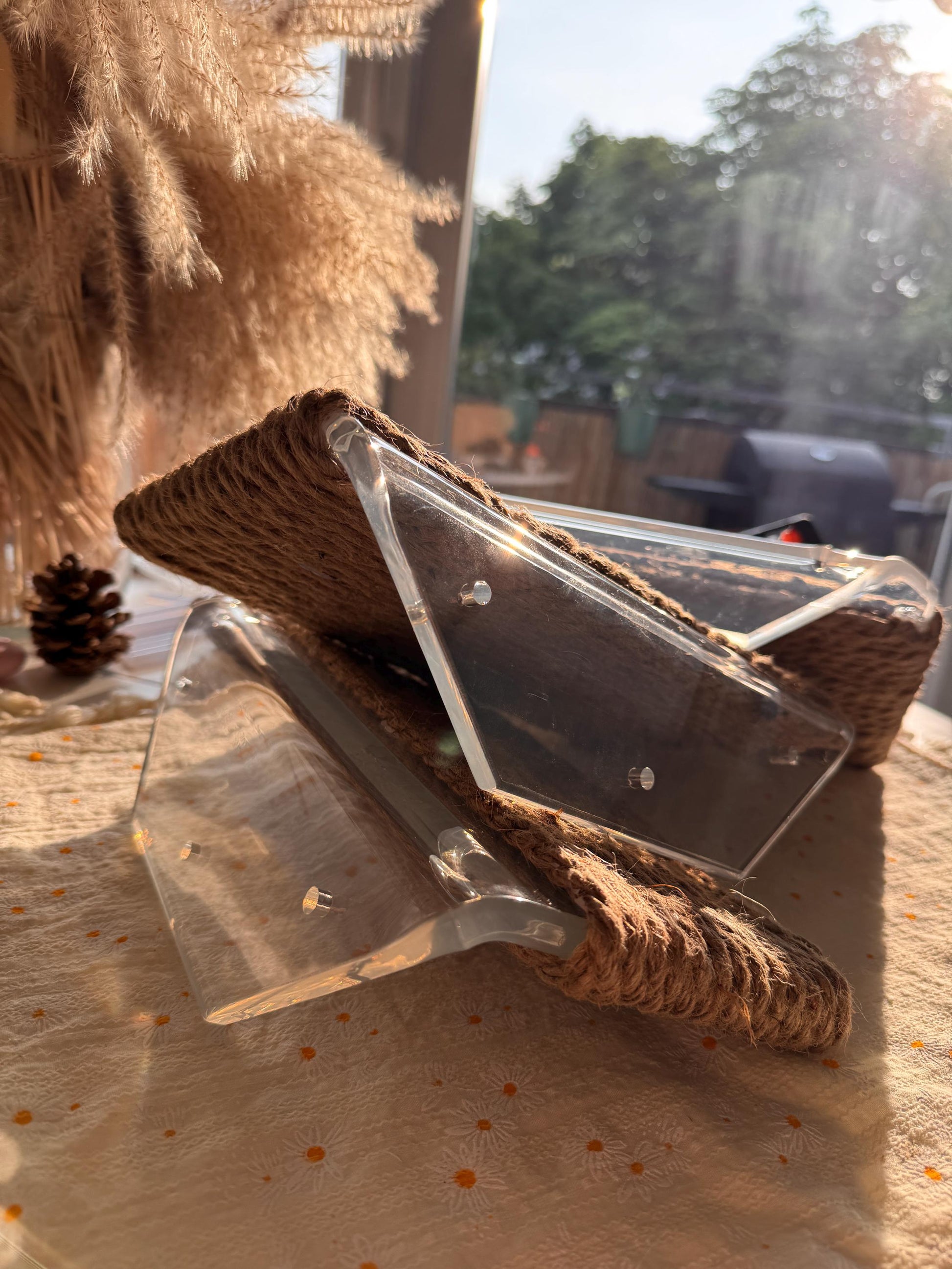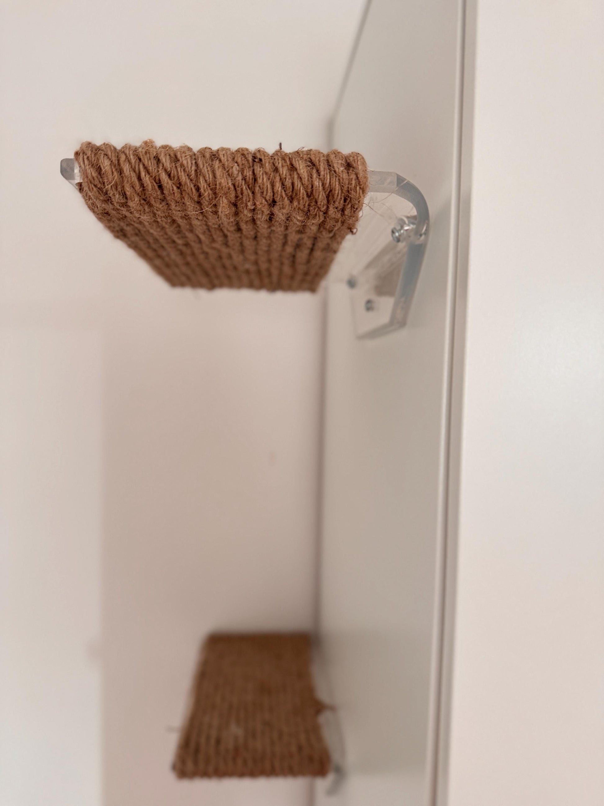 Create a stylish climbing playground for your cat with these wall-mounted acrylic steps with natural jute scratching surfaces.