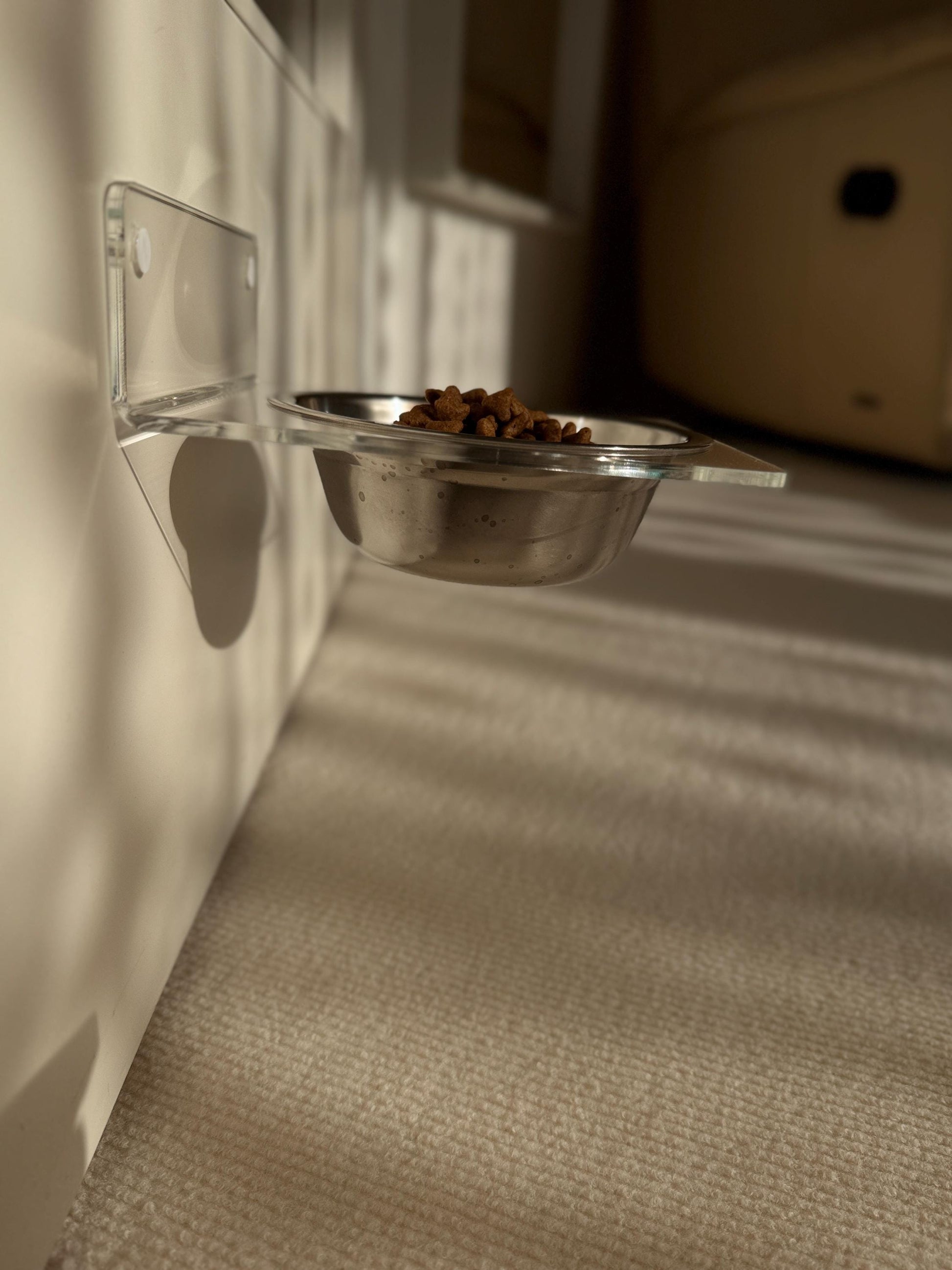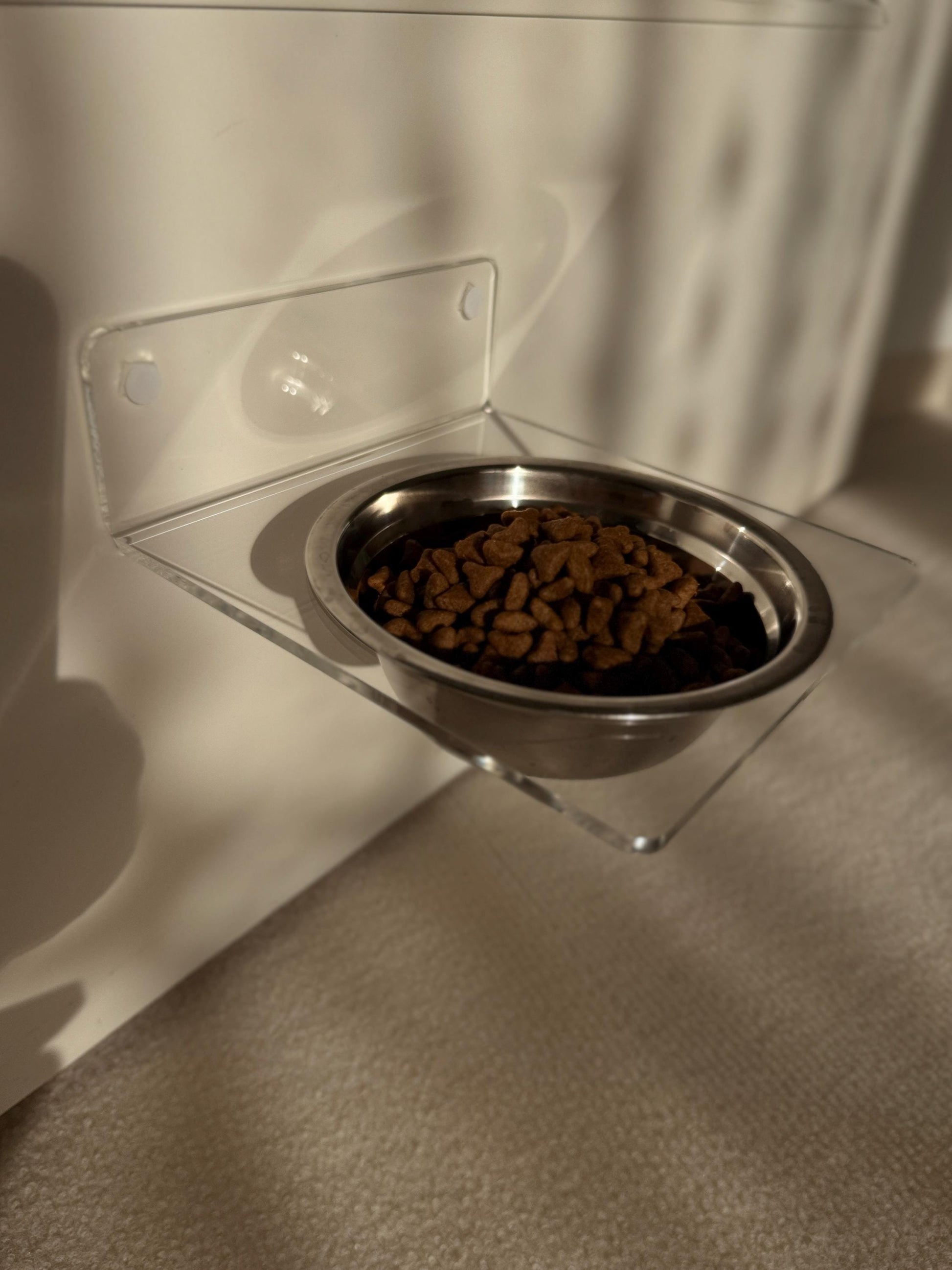 Upgrade your home and give your pet a cleaner, more comfortable feeding experience with this beautifully simple acrylic wall-mounted pet feeder.