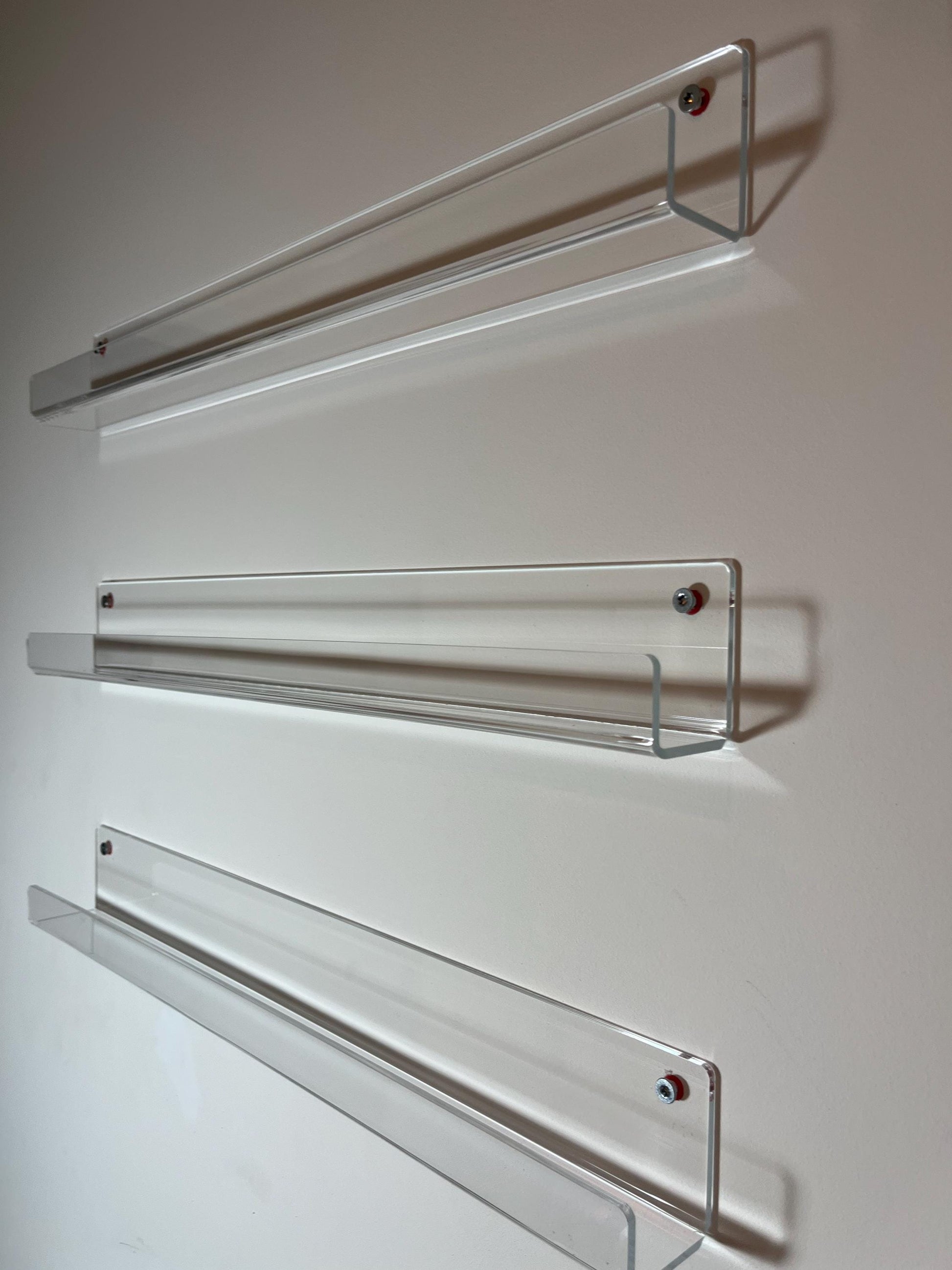 Keep your gel polishes beautifully organized and always visible with this transparent acrylic slim wall shelf.