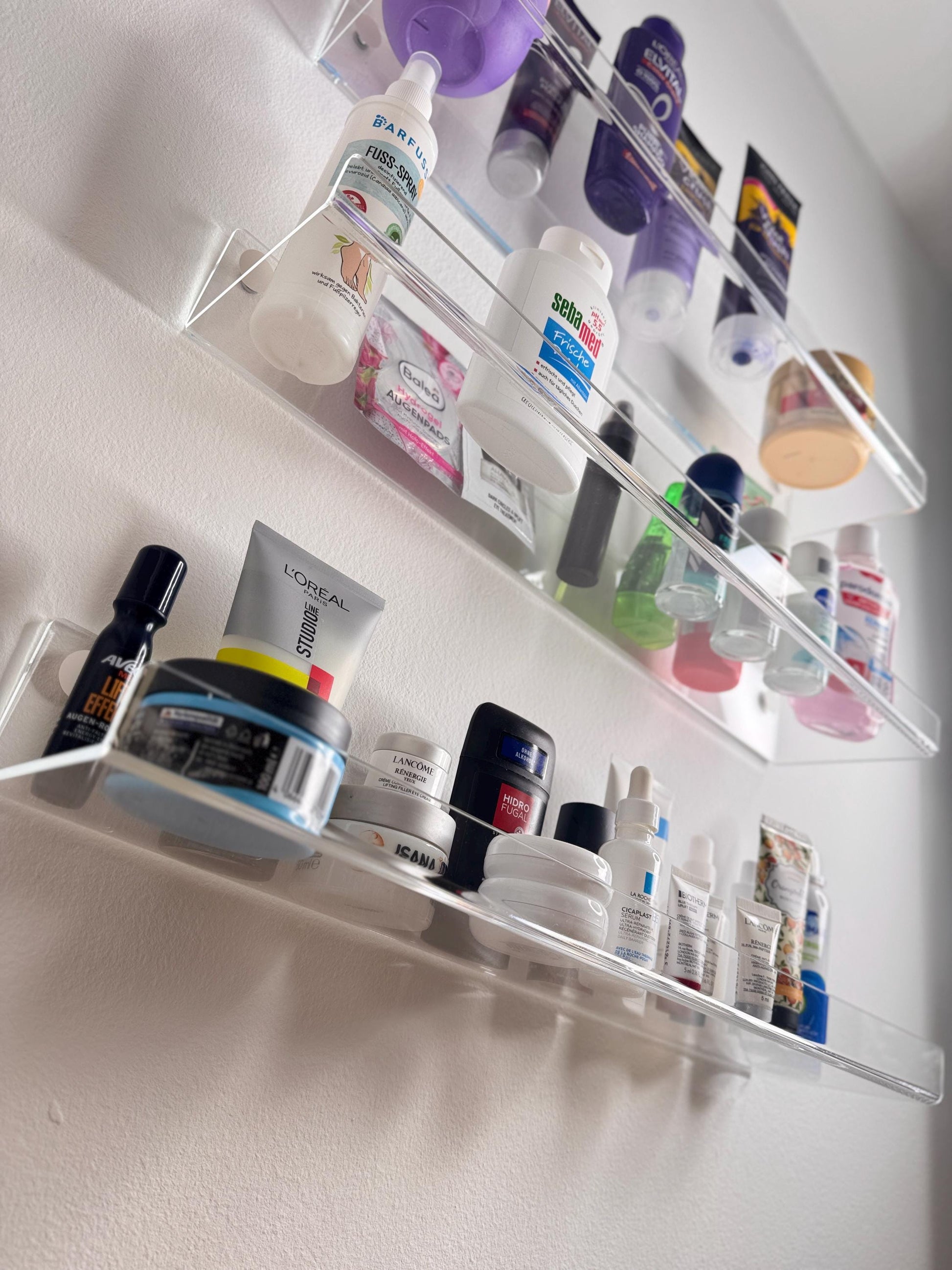 Floating transparent acrylic shelves for the office. wall-mounted Airy long shelves for cosmetics. Invisible shelves for the bathroom. 1 pc.