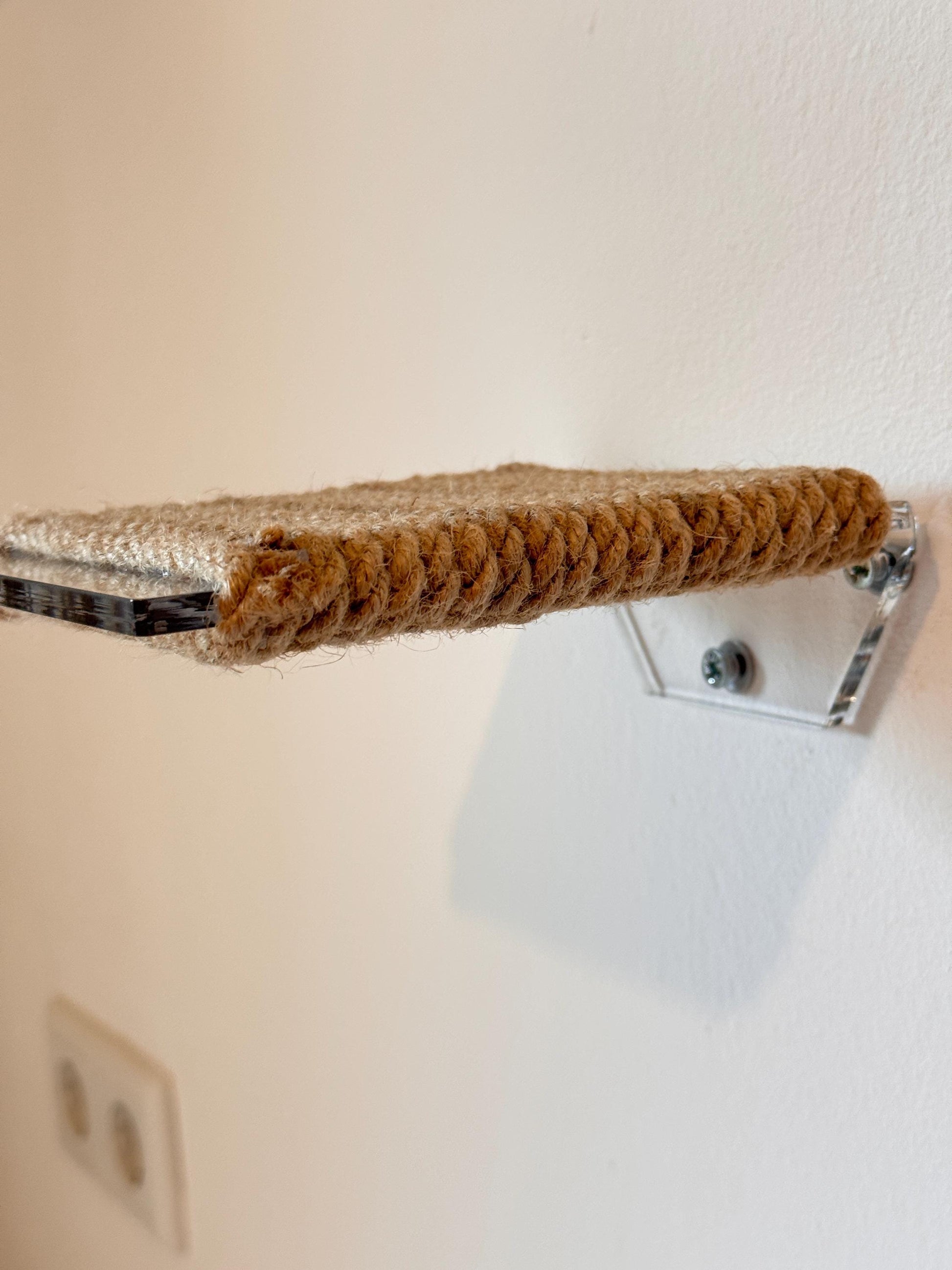 Sturdy wall-mounted cat shelves. Set of 3. Size: 13 x 17 cm. These floating shelves and scratching posts will delight your pets. They can be used on any wall, either as a play ladder or as a scratching post.