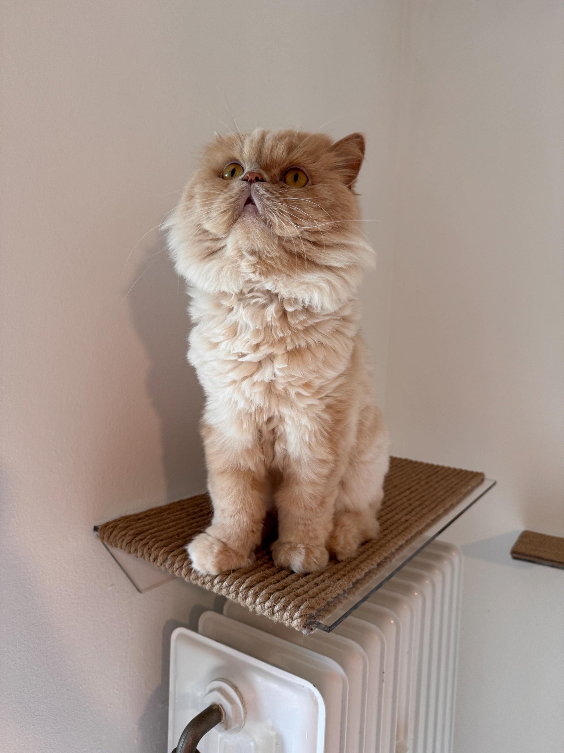 This medium-sized acrylic and jute cat bed will delight your cat. It serves as a sleeping shelf and scratching post. Durable, reliable, and beautiful. Dimensions: 45 x 30 cm.